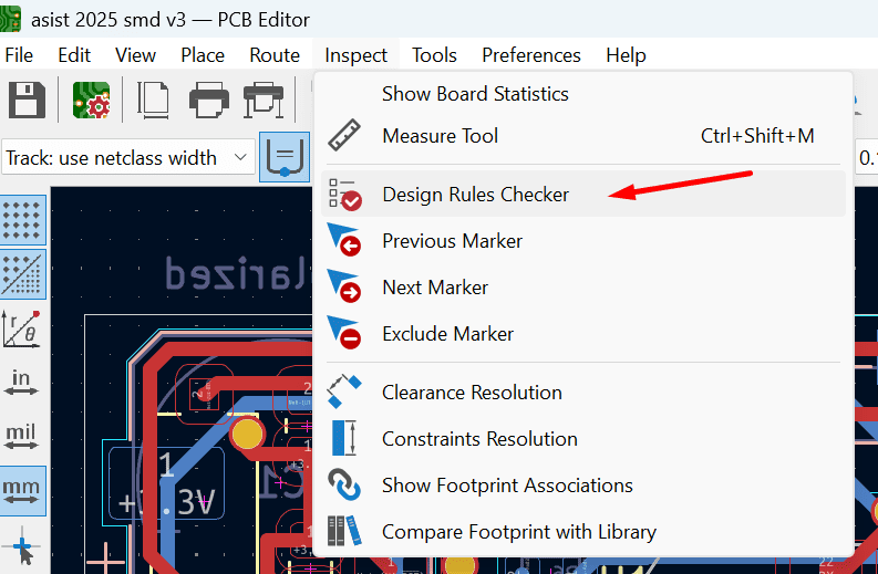 Ikuti aturan jarak minimum sesuai standar pabrik PCB yang kamu pakai. Di RaftechPCB, minimum clearance adalah 0.1mm (jarang pabrikan PCB lokal yang mampu), tapi tetap jika space PCB masih lebar, usahakan agar clearance lebih besar untuk hasil cetak yang lebih baik. Gunakan fitur DRC (Design Rule Check) di software desain PCB seperti KiCad, atau Eagle untuk pengecekan clearance dan lebar jalur. Aktifkan dan patuhi, jangan diabaikan ya.