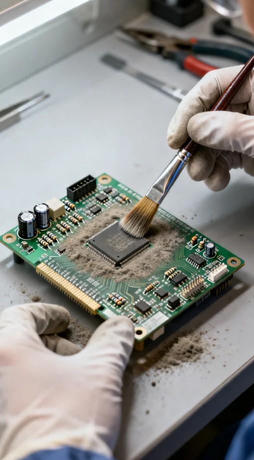 Lingkungan operasional juga berperan besar dalam umur pakai perangkat. Debu, kelembapan, dan perubahan suhu dapat menyebabkan korosi mikro pada jalur PCB dan kaki komponen. PCB berkualitas rendah cenderung memiliki perlindungan permukaan yang minim, sehingga lebih rentan terhadap degradasi lingkungan. Finishing PCB yang baik, seperti solder mask yang rapat dan permukaan pad yang halus, membantu mengurangi risiko korsleting dan oksidasi.